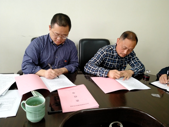 圖為集團公司黨委與黨辦及各黨支部簽訂《黨的建設(shè)工作考核責(zé)任書》