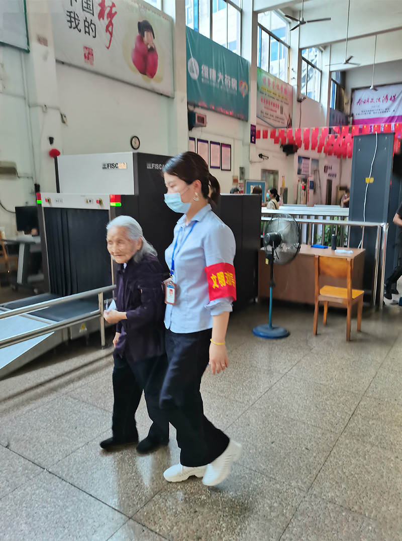 扶行動(dòng)不便老奶奶進(jìn)站乘車